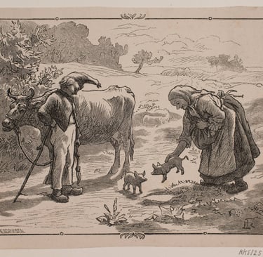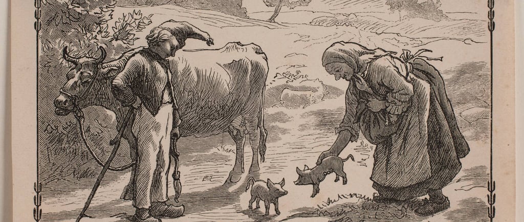 Ovenfor er gengivet en illustration fra eventyret om De tre små røde grise (www.smk.dk). Tegneren er ukendt, men billedet er dateret 1878. Det var en tid, hvor eventyrene blomstrede, både gennem brødrene Grimms indsamlinger og fortolkninger af traditionelle folkeeventyr, men det nationale ikon, H.C. Andersen (1805-75) fornyede på fornemste vis genren med sine originale eventyr. Generelt var Andersens fortællinger dog langt fra den usminkede ondskab, som de især de gamle, tyske folkeeventyr udfoldede uden omsvøb.
